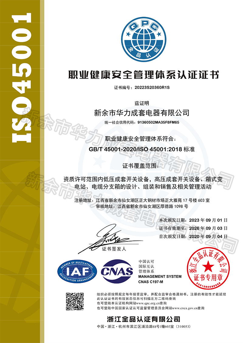 職業(yè)健康安全管理體系證書中/英文查看詳情>>
