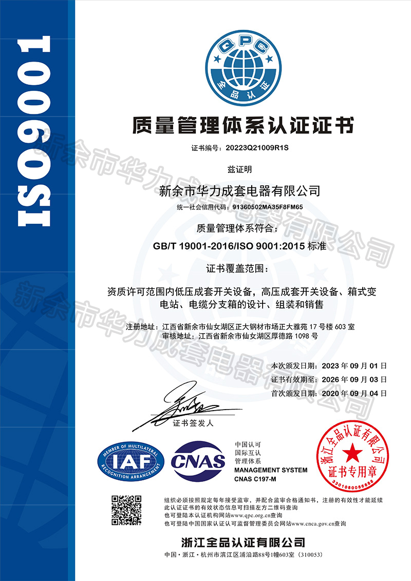 質(zhì)量管理體系認(rèn)證證書中/英查看詳情>>